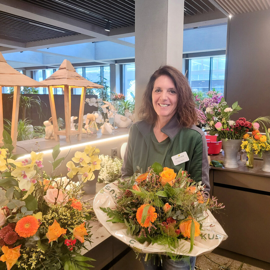 Seit drei Jahrzehnten bereichert Flavia Näpflin mit ihrer Kreativität und ganz viel Herzblut unser Blumengeschäft. Mit ihrem feinen Gespür für Farben, Formen und Trends macht sie jeden Anlass zu etwas ganz Besonderem und ist ein wichtiger Bestandteil in unserem Floristik-Team.