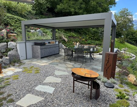 Abgerundet wird das Projekt durch eine Thermogreen-Pergola mit integrierter Aussenküche sowie einen neuen Whirlpool, die zusätzlichen Komfort schaffen und den Garten zu einem attraktiven Ort für Erholung und gesellige Stunden im Freien machen.